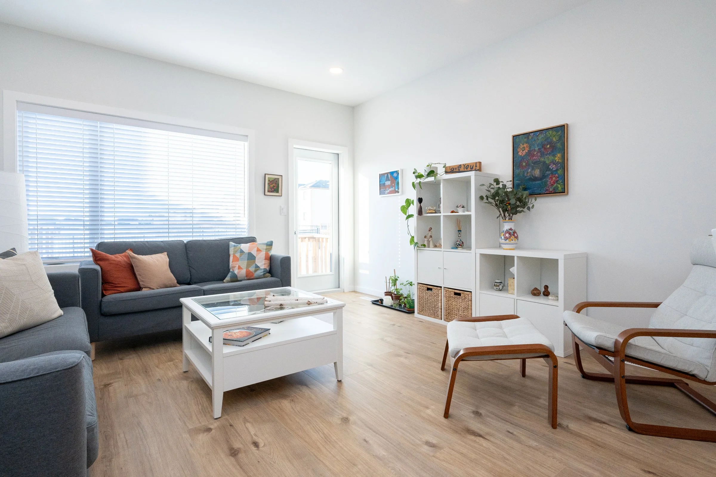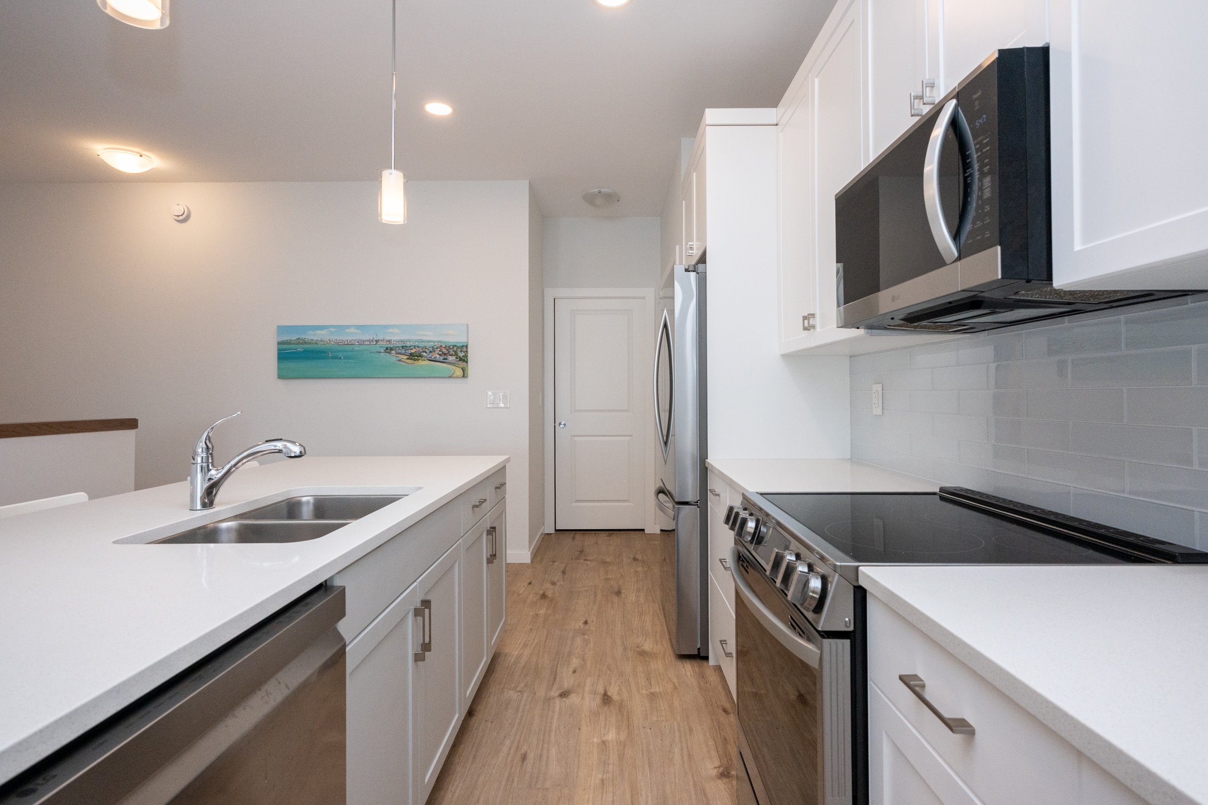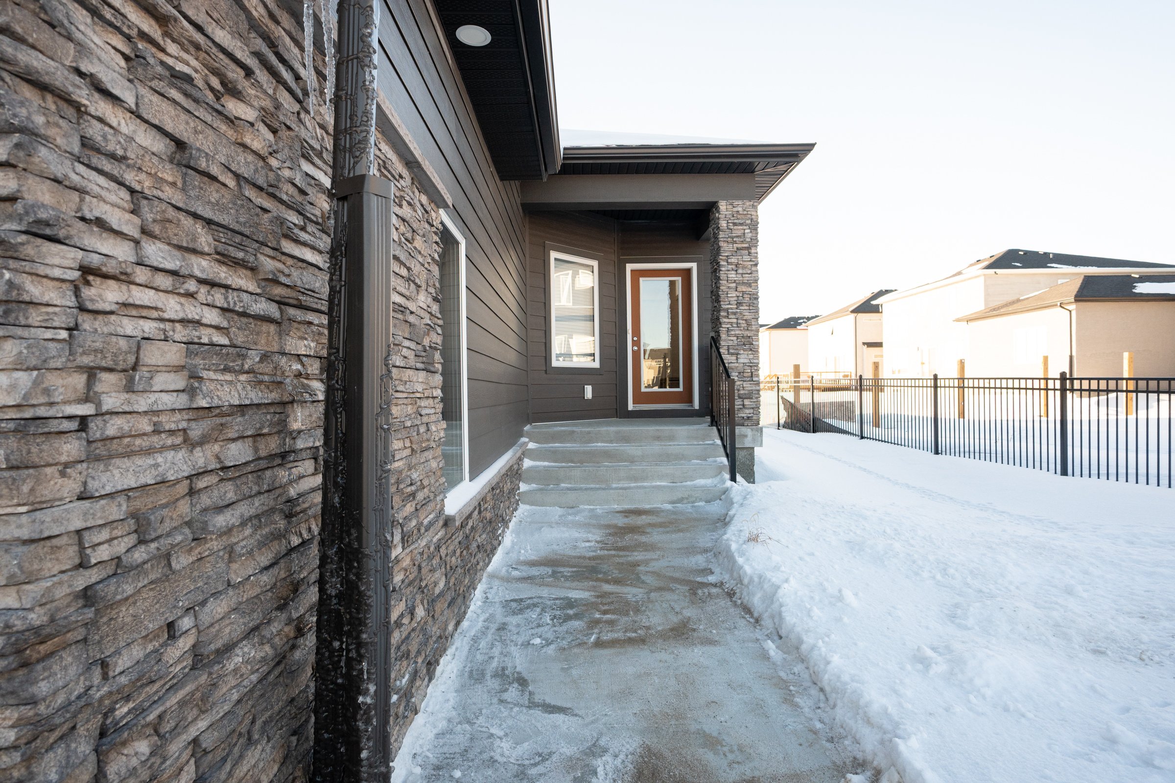 Built by Broadview Homes, this beautiful home offers 9’ ceilings, abundant natural light, and an open-concept layout. The main level features vinyl plank flooring throughout, a spacious living room with pot lights, and a galley-style kitchen with white shaker thermofoil cabinetry, quartz countertops, tiled backsplash, large island with sink, and a generous pantry closet. Appliances include fridge, stove, over-the-range microwave, dishwasher, washer, and dryer. A front bedroom with carpet and walk-in closet is located near the entry. Also on the main floor is a mudroom with laundry for added convenience. The primary bedroom is complete with a walk-in closet and an ensuite with a tiled shower. Additional features include a steel beam construction, 200-amp panel, electric furnace, central air, and sump pump. The exterior is beautifully finished in hardie board + stone and offers a double attached garage with windows in the overhead door and side wall. Situated on a nice corner lot in Parkview Pointe, the fully fenced backyard backs directly onto school grounds.