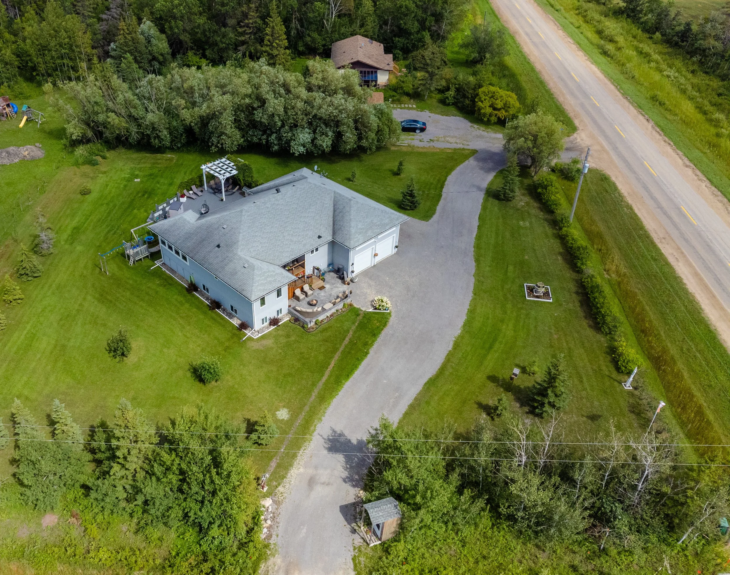 Space, comfort and a thoughtful design come together in this impressive home set on a corner lot. With 3 main floor bedrooms, 2 additional bedrooms in the lower level and 3 bathrooms, there is plenty of room for the entire family or to be used as a multi family dwelling. The main level showcases vaulted ceilings, hardwoods and a sunroom that adds extra living space. The custom kitchen with a butler pantry is designed for both everyday living + entertaining. Downstairs, the lower level features a large rec room w/an electric fireplace, wet bar, multiple storage areas and direct access to the insulated attached garage. Outside, the manicured yard w/mature trees provides several inviting spaces to gather + relax, including tiered front + back decks, a poured concrete front patio, a private firepit area and a double driveway w/plenty of parking. Additional features include main floor laundry, geothermal heating + cooling, central vac, sump pump and a septic tank + field. Located on a paved road just steps from Sandy Hook Golf Course, this property also offers quick access to the city and is only minutes from Gimli.